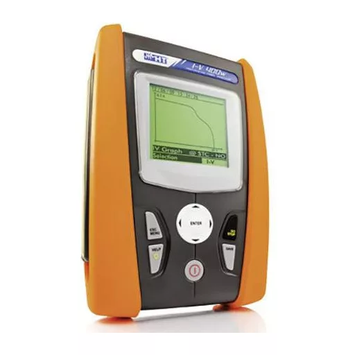 Az egyes fotovoltaikus modulok, valamint a modul húrjának áramerősség-jellemzőinek meghatározása max. 1000 V és max. 15 A. Egy gombnyomással az áramteljesítmény (Mpp), a csúcsteljesítmény, a rövidzárlati áram és a megszakadt áramkör feszültsége megjelenik a grafikus kijelzőn, és automatikusan konvertálódnak a standard tesztkörülményekre (STC).