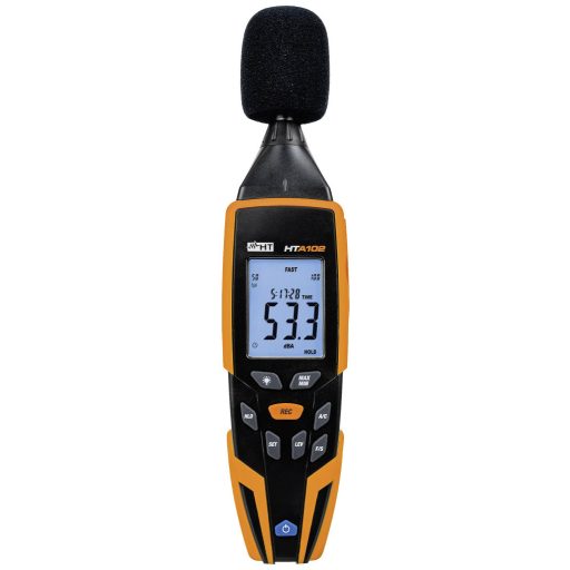 A HTA102 egy digitális hangszintmérő, amellyel szabványos környezeti zajt, zajszintet, zajszennyezést stb. Lehetővé teszi a hangnyomásszint (SLP) rögzítését választható mintavételi intervallumokkal. A HTA102 USB-kimenettel rendelkezik a számítógépes csatlakozáshoz, és a SoundLink szoftvert szabványos tartozékként szállítja. Valós idejű rögzítés (adatgyűjtő) végezhető, az eredményeket grafikonok és szöveges formátumban mentett adatok formájában mutatjuk be. A HTA102 hordozható kalibrátorral van felszerelve, amely előzetes ellenőrzéseket végez, és az összes mérési tartozékkal együtt tokba van csomagolva.