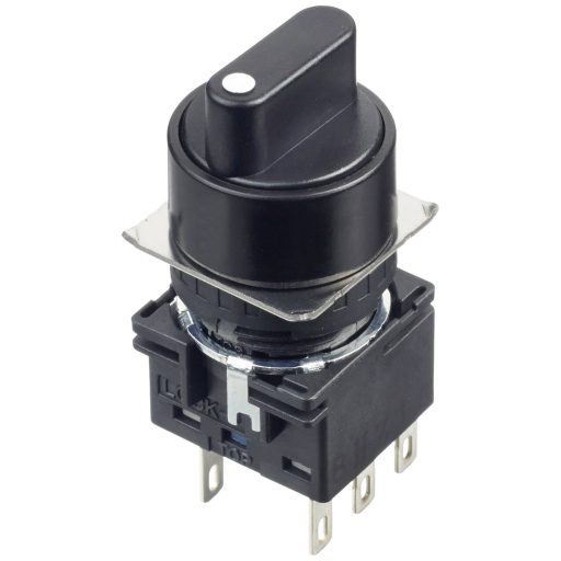 Műszaki adatok: Anyag: Műanyag · Beépítési átmérő: 16.2 mm · Csatlakozó (építőelem): Forrasztható, 2,8 mm-es laposérintkezős dugó · Funkciók (kapcsoló/nyomógomb): Reteszelő · Ház/gomb szín: Fekete · Kapcsolási feszültség: 220 V · Kapcsolási pozíciók: 3 · Kapcsolási szög: 3 x 45 ° · Kapcsoló/nyomógomb jellemzők: kiemelkedő működtető · Max. kapcsolási áram: 5 A · Méret, hossz: 43.4 mm · Méret, magasság: 17.8 mm · Méret, szélesség: 17.8 mm · Működtetés módja: Forgókar · További műszaki adatok: Panelre szerelt · Világítás típus: Nincs · Védelmi típus: IP65 · Érintkező típus: 2 váltó