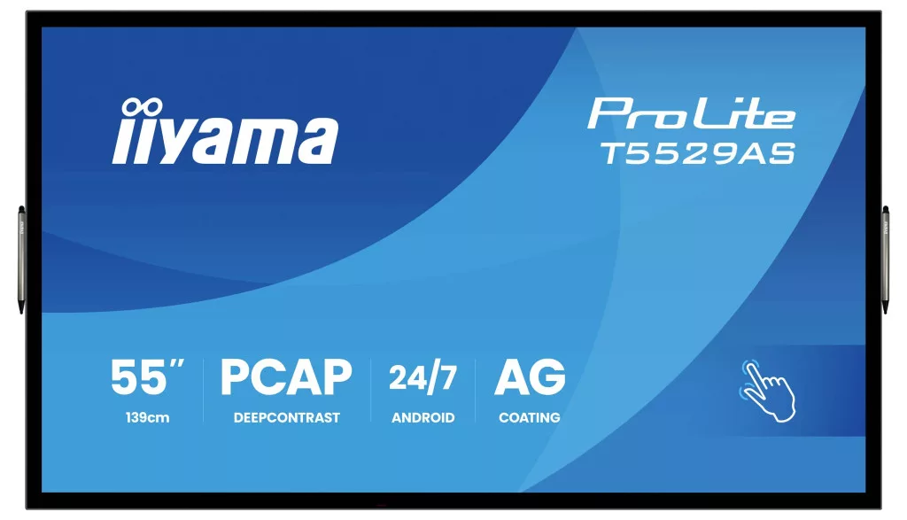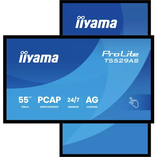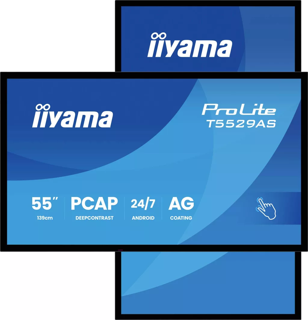 iiyama T5529AS-B1AG Interaktív síkképernyős kijelző 138,7 cm (54,6" ) LED Wi-Fi 500 cd/m² 4K Ultra HD Fekete Érintőképernyő Beépített processzor Android 24/7