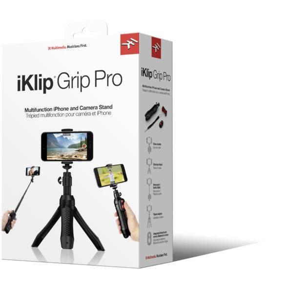 Többfunkciós okostelefon és kamera / szelfi bot / állvány, beleértve a Bluetoot távirányítótAz iKlip Grip Pro egy nagy formátumú, kompakt multifunkcionális tartó iPhone és fényképezőgépekhez, integrált, levehető Bluetooth redőnyvezérléssel, amely 4 tartozékot egyesít egybe: szuper biztonságos asztali állvány, video fogantyú nagy tartóval, monopod és standard állvány adapter. Az iKlip Grip Pro bármilyen iPhone-t képes tárolni, tokkal vagy anélkül, és rendelkezik egy szabványos rendszerrel kicsi, mobil videokamerák, például GoPro®, kompakt digitális fényképezőgépek és terepi felvevők csatlakoztatására. Az iKlip Grip Pro nagyméretű, ergonómikus fogantyúval rendelkezik, amely robusztus állványként bontakozik ki, és egy integrált hosszabbító rúdja, amelyet 62 cm-ig (24 ″) lehet meghosszabbítani. Ezen kívül az iKlip Grip Pro rendelkezik egy elfordítható gömbcsukló rögzítési ponttal, amellyel a telefont 90 ° -os szögben és 360 ° -os elfordítási szögben lehet elhelyezni.