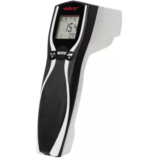 Műszaki adatok: Alappontosság: 1.5 °C · Emissziós fok (max.): 1.0 · Emissziós fok (min.): 0.1 · Felbontás (hőmérséklet): 0.1 °C · Hatékonysági fok: Előre beállítva 0,95, 0,1-től 1,0-ig beállítható · Hőmérséklet (max.): +550 °C · Hőmérséklet (min.): -60 °C · Hőmérséklet méréstechnika típus: Infra hőmérő · Kalibrált: Gyári standard · Méret, hossz: 117 mm · Méret, magasság: 144 mm · Méret, szélesség: 43 mm · Optika: 12:1 · Súly: 180 g · További műszaki adatok: Védelmi típus: IP54 · Tápellátás: 2 db mikroelem (vele szállítjuk)