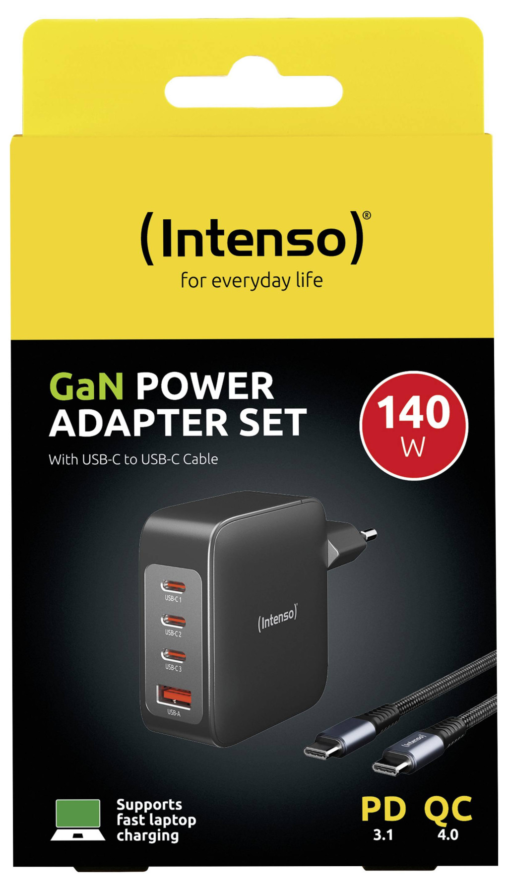 Technical specifications: Alkalmas: iPhone,Smartphone,MacBook,PC,Tablet,Notebook · Alkalmazási terület: Beltér · Bemenetek: Euro dugó · Bemeneti feszültség: 100 - 240 V/50 - 60 Hz · Kimenetek: #####3x USB-C®,#####1x USB-A · Kimenetek száma: 4 x · Kimeneti feszültség: 5 V,21 V,3.3 V,11 V · Méret, hossz: 67 mm · Méret, magasság: 100 mm · Méret, szélesség: 31 mm · Szín: Fekete · Teljesítmény: 140 W · További műszaki adatok: