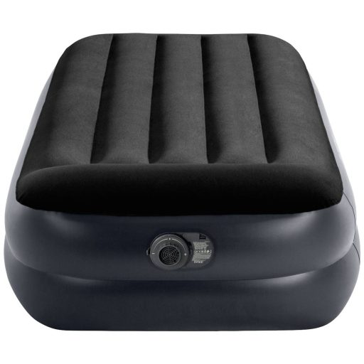 A 99 x 191 x 42 cm-es " Pillow Rest Raised Airbed" Twin integrált elektromos pumpával az Intex Dura-Beam® Plus sorozatából a tökéletes alvási megoldás otthoni használatra. Az innovatív, szabadalmaztatott Fiber-Tech™ technológia a könnyű és nagy szilárdságú szálak révén javítja a standard belső konstrukciót, ezáltal kiváló tartósságot és óriási kényelmet biztosít. A hullámsugár-konstrukció egyenletes ágyfelületet hoz létre, és jó éjszakai alvást biztosít, bárhol is van. A minőségileg tesztelt, bolyhos felső, a kényelmes 42 cm-es matracmagasság és a beépített párna abszolút kellemes kikapcsolódást és pihentető alvást tesz lehetővé. A beépített elektromos szivattyú (220-240 V) gyors és egyszerű felfújást tesz lehetővé. Külön szivattyú nem szükséges. A légágy 2 ¼ percen belül felfújódik. A praktikus tárolótáskának köszönhetően az ágy könnyen szállítható és elrakható. Max. teherbírás: 136 kg.