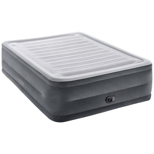 A 152 x 203 x 56 cm-es " Comfort-Plush High-Rise Airbed" Queen integrált elektromos pumpával az Intex Dura-Beam® Deluxe sorozatából a tökéletes alvási megoldás otthoni használatra. Az innovatív, szabadalmaztatott Fiber-Tech™ technológia a könnyű és nagy szilárdságú szálak révén javítja a standard belső konstrukciót, ezáltal kiváló tartósságot és óriási kényelmet biztosít. A hullámsugár-konstrukció egyenletes ágyfelületet hoz létre, és jó éjszakai alvást biztosít, bárhol is van. A kétrétegű, szuperpuha anyagból készült, minőségileg tesztelt felsőrész és a kényelmes 56 cm-es matracmagasság abszolút kellemes kikapcsolódást és pihentető alvást tesz lehetővé. A beépített elektromos szivattyú (220-240 V) gyors és egyszerű felfújást tesz lehetővé. Külön szivattyú nem szükséges. A légágy 4 ¾ percen belül felfújódik. A praktikus tárolótáskának köszönhetően az ágy könnyen szállítható és elrakható. Max. teherbírás: 272 kg.