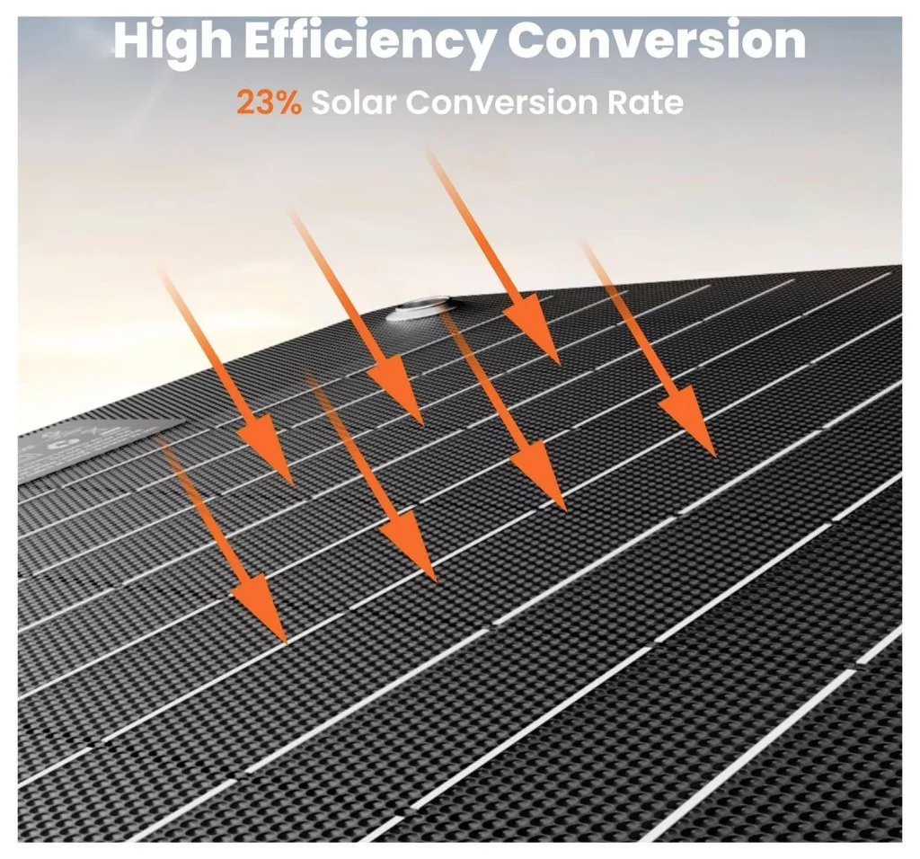 Hatékony napelemes töltés: Az iparágban vezető, 23%-os hatásfokával a hordozható SolarSaga 40 W-os napelem eddig soha nem látott módon hasznosítja a napenergiát. A közvetlen napelemes töltés lehetővé teszi, hogy bármikor, bárhol töltse eszközeit – amíg van napfény. Lenyűgöző 2,5 óra alatt képes teljesen feltölteni egy iPhone 13-at, az E100 Plus napelemes generátort pedig mindössze 4 óra alatt képes 80%-os kapacitásra feltölteni.