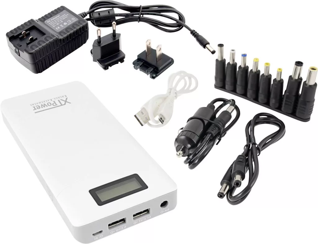 Szállítás tartalma: Powerbank · Adapter · Laptop adapter készlet · Kézi