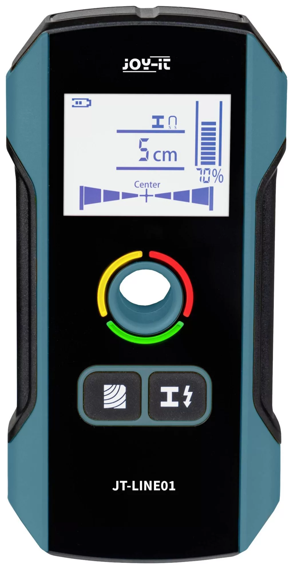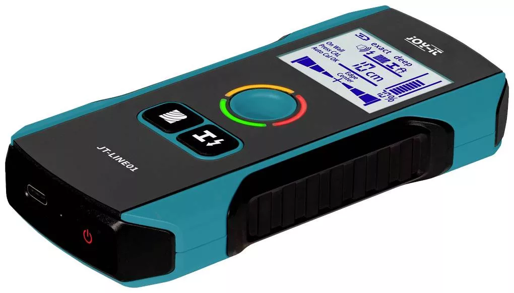 A JT-Line01 vonalkereső és multidetektor könnyen és biztonságosan érzékeli a szerkezeteket gipszkartonban, falakban, falfelületeken vagy padlókon. Az innovatív szenzortechnológiának köszönhetően a készülék nem csak éles vonalakat, hanem fém és fa alépítményeket is képes pontosan meghatározni. Három üzemmódjával sokoldalú, és akár 120 mm-es maximális érzékelési mélységet kínál. Az áttekinthető kijelző pontosan mutatja, mi rejtőzik a fal mögött, míg a háromszínű LED-es fénygyűrű vizuális visszajelzést is ad. A házon található kör alakú nyílás megkönnyíti a pontos hely megjelölését, az optimális kezelés érdekében pedig praktikus védőtáskával szállítjuk a készüléket.