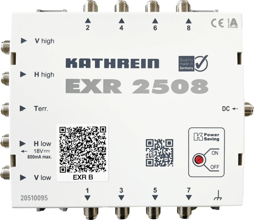 Kathrein EXR 2508 Sat multikapcsoló Bemenetek (multikapcsoló): 5 (4 SAT/1 terresztikus) Résztvevők száma: 8