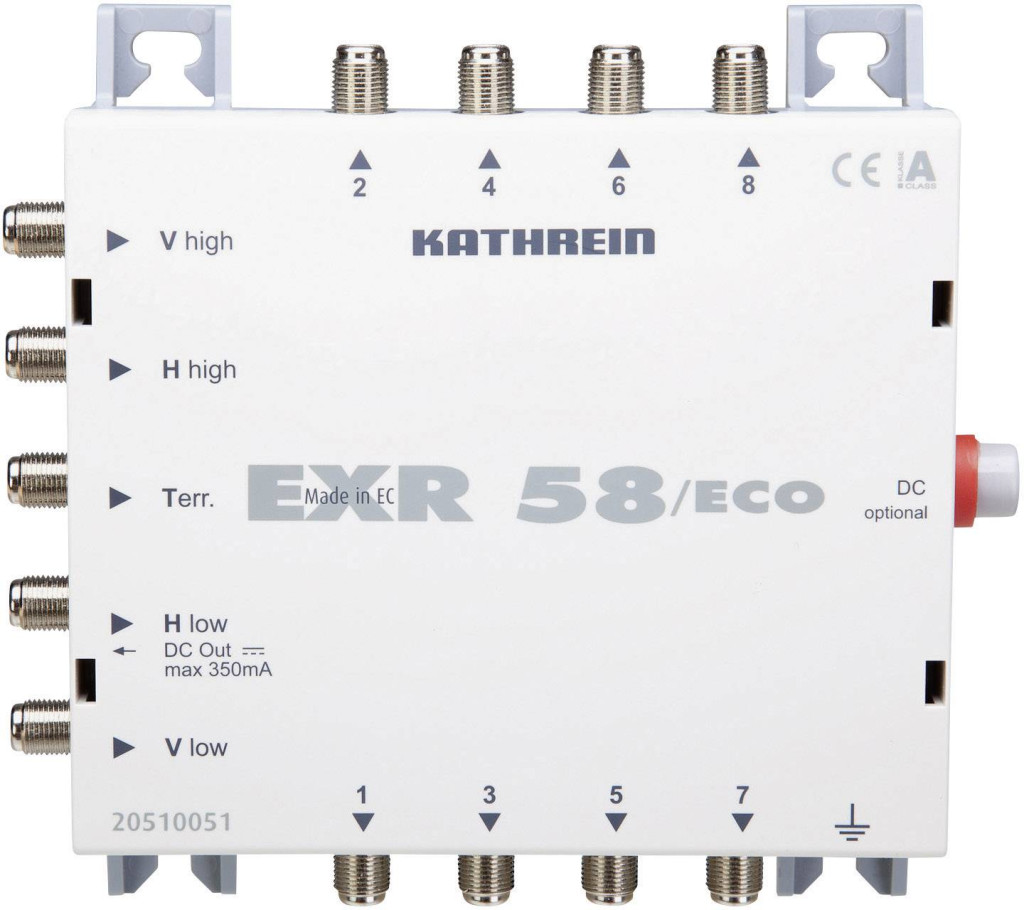 Kathrein EXR 58/ECO Sat multikapcsoló Bemenetek (multikapcsoló): 5 (4 SAT/1 terresztikus) Résztvevők száma: 8