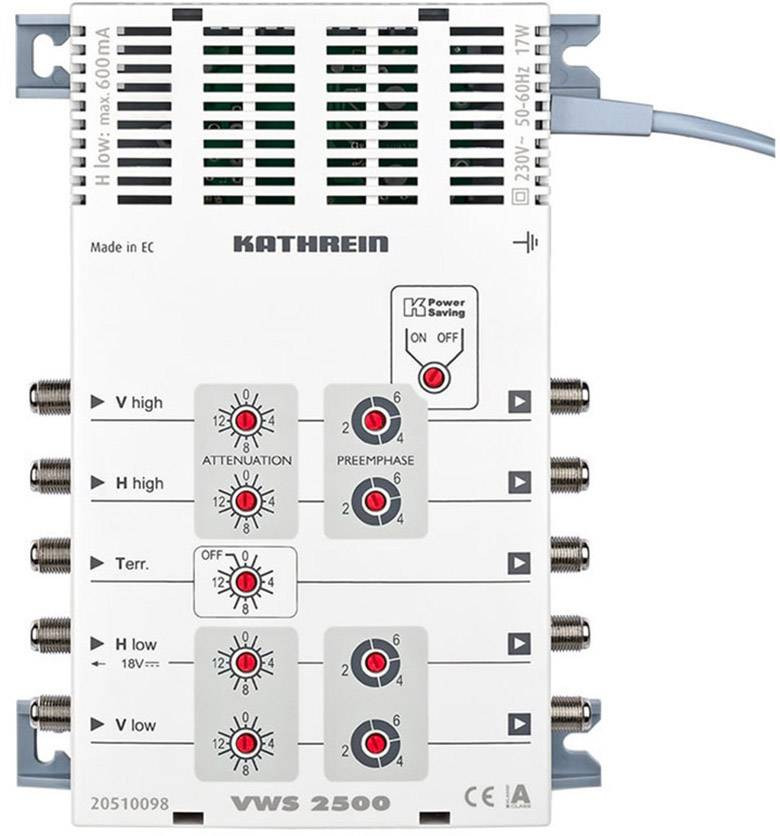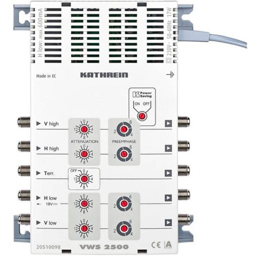 A VWS 2500 az optimális jelátvitelre szolgál a nagyobb multiswitch kaszkádok bemenetén, vagy kaszkádozható elosztóhálózati erősítőként, hogy kompenzálja a kábelt vagy elágazást / elosztót a nagyobb elosztóhálózatok csillapításával.