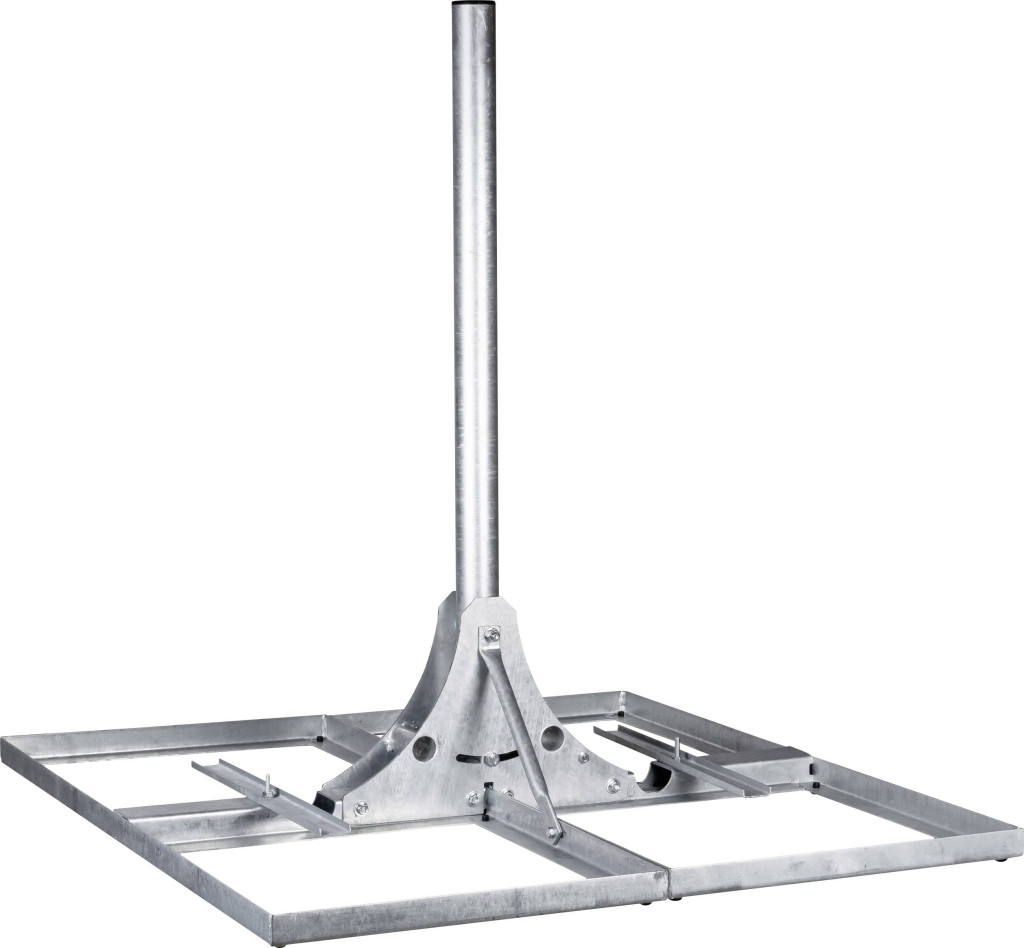 A ZAS 150 lapostetős állványt műholdas antenna (CAS 120 méretig) vízszintes felületre történő felszerelésére fejlesztették ki. A stabil rögzítési rendszer biztosítja a pontos beállítást.