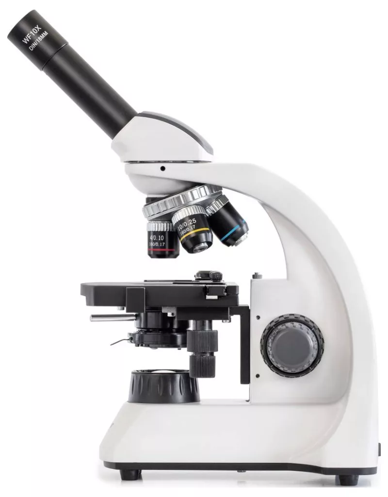 Jellemzők: Kontrasztmódszerek: fényerõ-szemlencsék: HWF 10x / Ø18mm objektívek: 4x / 10x / 40x (akromatikus) optikai rendszer: véges (DIN) XY szakasz: 115x110 mm kondenzátor: Abbe NA 1.25 fix (rekesz-membránnal) Megvilágítás: 1W LED (átvilágított fény)