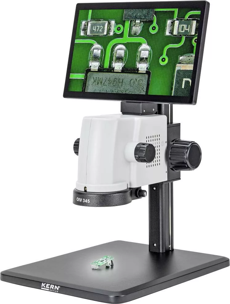 A Kern OIV 345 egy videomikroszkóp, amelyet a digitális sztereó mikroszkópia optimalizálására terveztek. Az axiális optika kifinomult teljes megoldása lehetővé teszi a minták közvetlen és egyszerű megjelenítését a képernyőn. A szabványban található LED beeső fény megvilágítás (gyűrű) biztosítja a minta optimális megvilágítását. A nagy munkafelülettel párosulva a képernyőn lévő tárgyak észlelése ideális megfigyeléshez, elemzéshez és dokumentáláshoz az ipari szektorban. A kiváló optika egyenletesen éles képvezetést tesz lehetővé a teljes, 0,7-5x zoomtartományban. Az okulár nélküli mikroszkóp 5 megapixeles kamerája a HDMI kimenetnek köszönhetően a minták zökkenőmentes élő megfigyelését kínálja a HD monitoron keresztül. Ezenkívül az intuitív szoftver, az USB stick és az USB egér, amelyek a szállítási terjedelem részét képezik, lehetővé teszik az eredmények egyszerű digitális feldolgozását és tárolását. Az OIV 345 modellnél lehetőség van a képdokumentációra egy gombnyomással, anélkül, hogy át kellene menni a szoftveren. A porvédő fedelet és a többnyelvű kezelési útmutatót a szállítási terjedelem tartalmazza. A belépő szintű videomikroszkóp a legegyszerűbb kezeléssel mindenféle alkalmazáshoz.