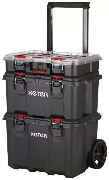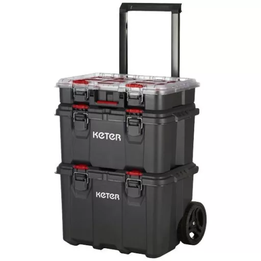 STACK N ROLL szerszámrendszer 3 db. (szerszámos kocsi, szerszámos doboz és választékos doboz), fekete/piros
