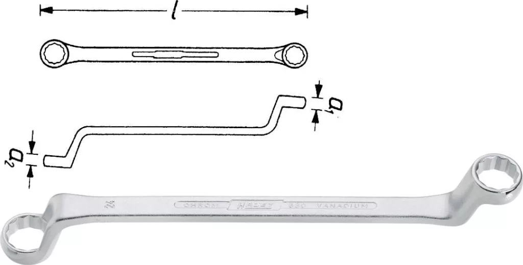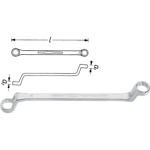 Mélyen derékszögben eltolva · Vékonyfalú fejekkel · Króm-vanádium · Felülete krómozva, fejek polírozva · DIN 838, ISO 10104