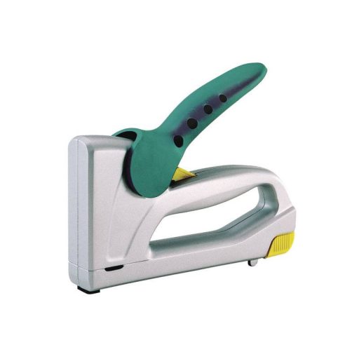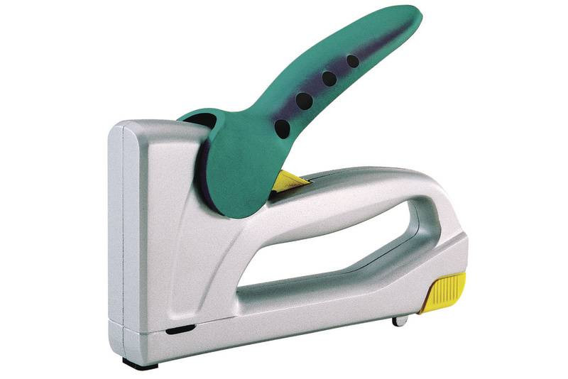 Jellemzők: A szolid, alumínium présöntésű háza jól terhelhető, kiegészítve ütőerő szabályozással, a jó fogású, műanyag bevonatú fogantyújával fáradságmentes a munka, fém házzal · 053 típusú, 6 - 14 mm közötti tűzőkapcsokhoz, 062 típusú szegekhez, 16 mm.