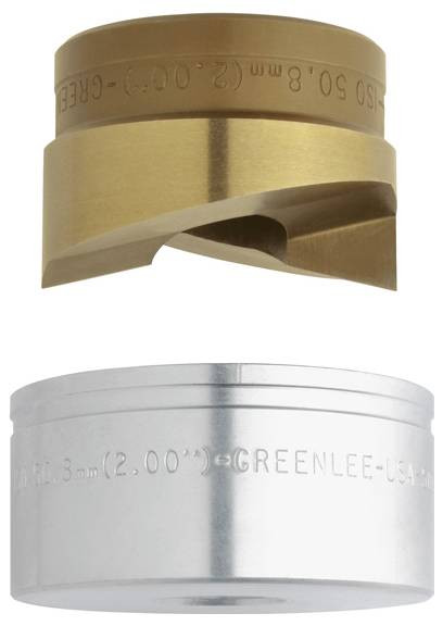 Hosszú termékélettartam. Kevesebb erőfeszítést igényel az egyszerű alkalmazásnak köszönhetően – a lyukasztási hulladék darabjai kettéhasadnak és könnyen eltávolíthatók. Alkalmas rozsdamentes acélhoz (V2A), acéllemezhez (St37), műanyaghoz és alumíniumhoz. Nagy teljesítményű lyukasztórendszer, amely lyukasztóból és matricából áll. Hidraulikus működtetés. 12,7 mm-es előfúró átmérő 50344102 11,1 mm-es toldalékcsavar-átmérőhöz, 20,5 mm-es előfúró átmérő 50344030 19,0 mm-es toldalékcsavar-átmérőhöz. Maximális anyagvastagság (V2A) 2,5 mm.