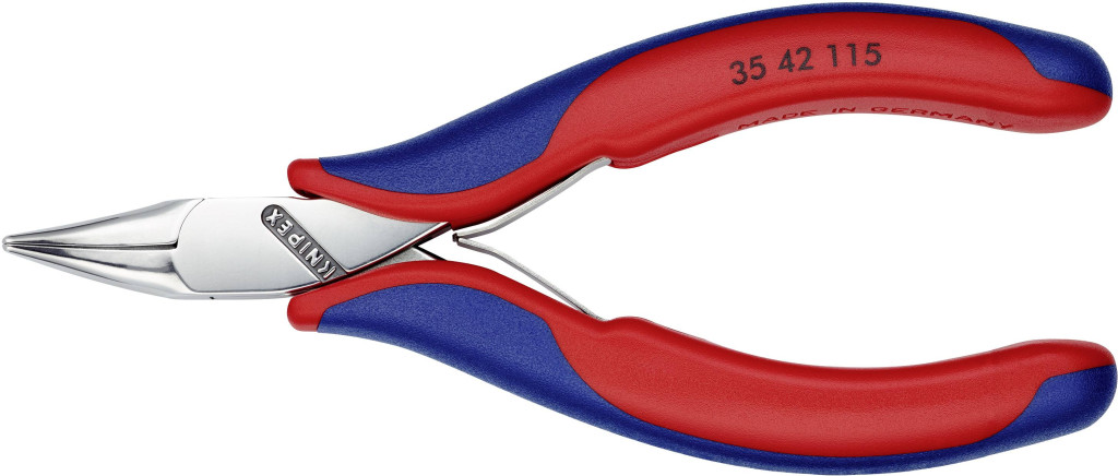 Műszaki adatok: Alkalmazási terület (fogók): Villanyszerelő · Anyag: Krómacél · DIN szabvány: DIN ISO 9655 · Gyártói szám: 35 42 115 · Méret, hossz: 115 mm · Méret, magasság: 17 mm · Méret, szélesség: 71 mm · Pofa forma: 45°-ban hajlított · Pofa hegyének szélessége: 2 mm · Pofa hossza: 22.5 mm · Pofa vastagság: 6.5 mm · Súly: 76 g · Termék típus: Precíziós fogó