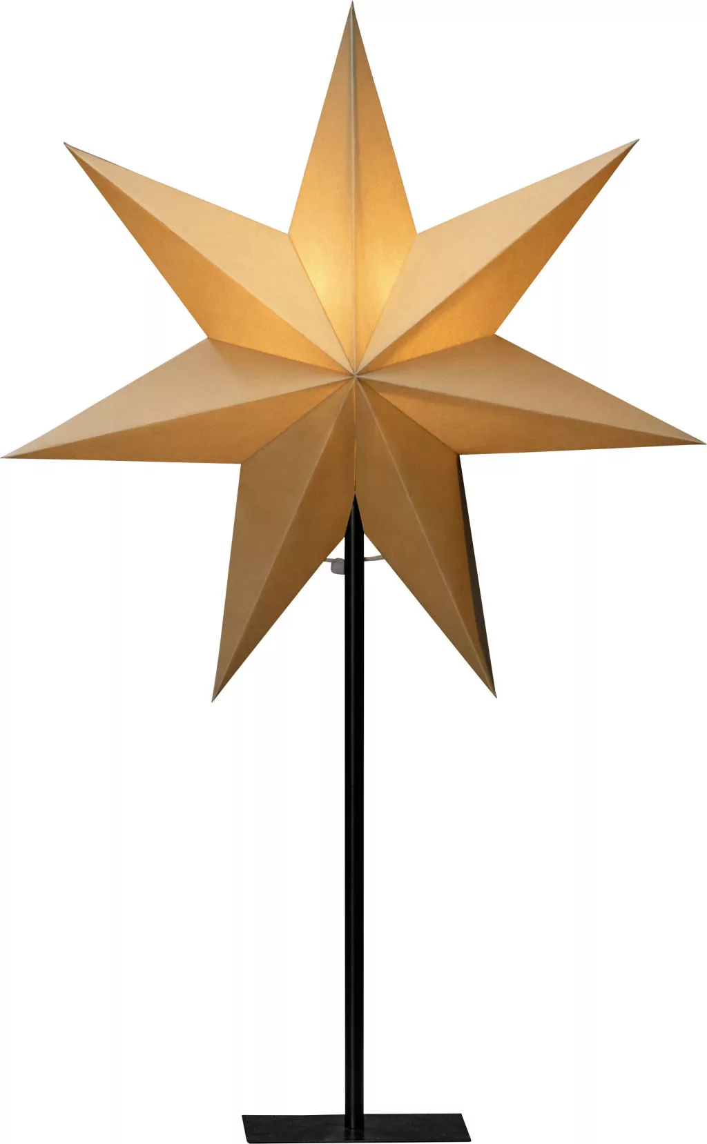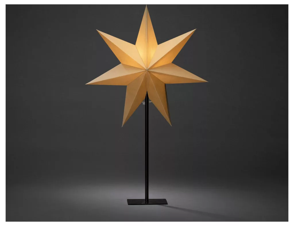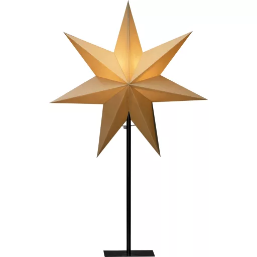 Bézs színű papírcsillag, álló, 7 ágú, hálózati kábellel és ki-be kapcsolóval, izzó nélkül, E14-es foglalat, 230V, beltéri, fekete kábel