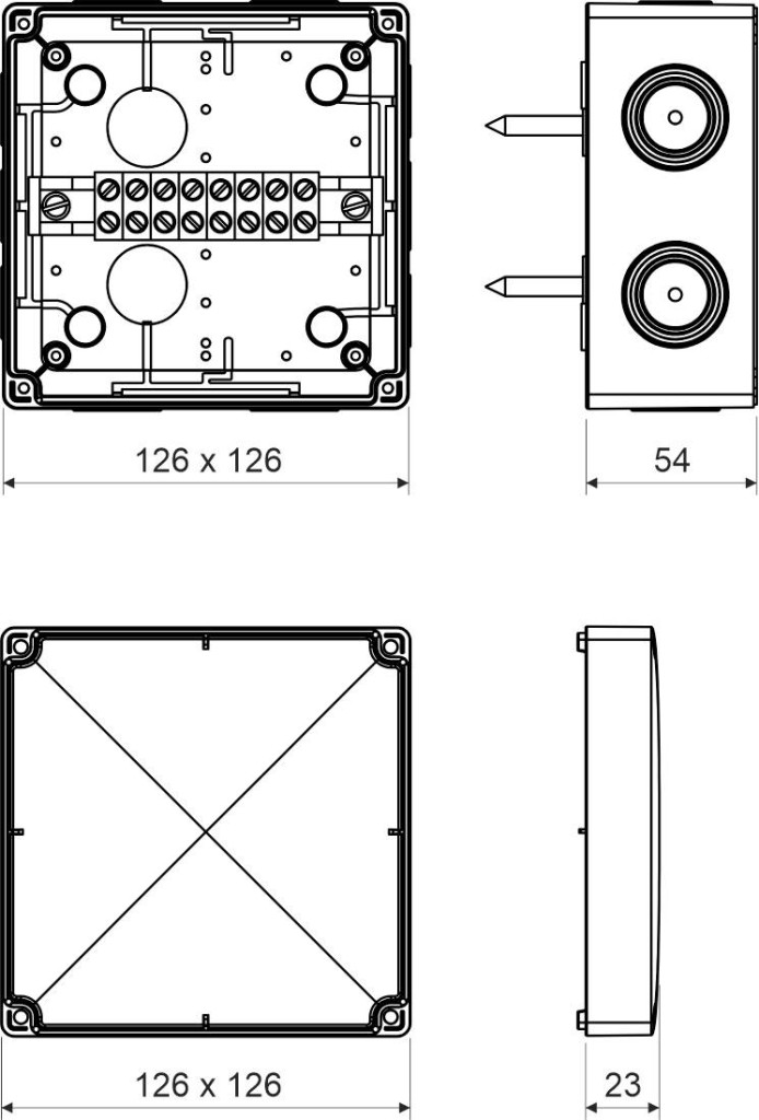 A doboz tartalmaz egy kerámia csatlakozót, amely funkcionális integritást biztosít - ez 8 vezetékhez alkalmas, 0,5-4 mm² keresztmetszetű.