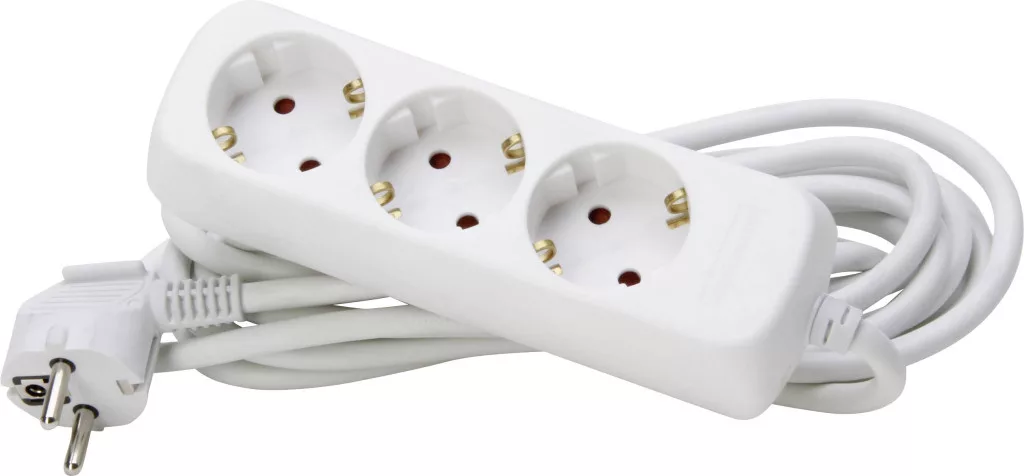 Műszaki adatok: Alkalmazás helye: Beltér · Anyag: Műanyag · Dugaljak száma: 3 · Gyártói szín: Fehér · Hálózati csatlakozó típus: Védőérintkezős · Kábel típus DIN/VDE szerint: H05VV-F 3G 1,5 mm² · Kábelhossz: 5.00 m · Védelmi típus: IP20 · Üzemi feszültség: 230 V