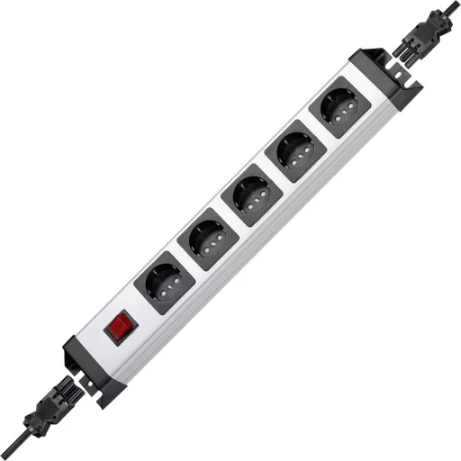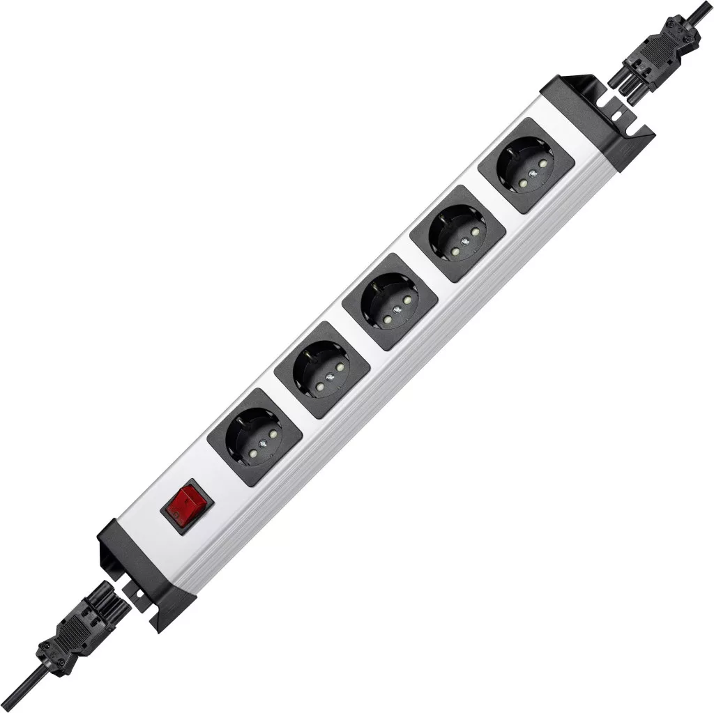 Műszaki adatok: Alkalmazás helye: Állandó, Beltér · Anyag: Termoplaszt · Csatlakozási teljesítmény: 3600 W · Dugaljak száma: 5 · Gyártói szín: Fekete, Ezüst · Hálózati csatlakozó típus: GST18i csatlakozó alj · Hálózati elosztó jellemzők: Kombi csatlakozórendszer, Kapcsolóval · Méret, hossz: 482 mm · Méret, szélesség: 71 mm · Védelmi típus: IP20 · Üzemi feszültség: 230 V