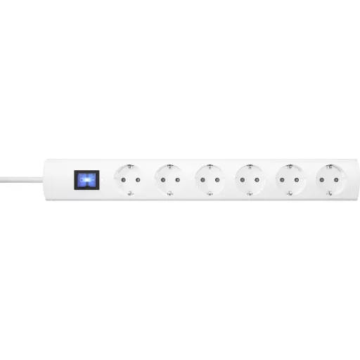 Műszaki adatok: Alkalmazás helye: Beltér · Anyag: Műanyag · Csatlakozási teljesítmény: 3680 W W · Dugaljak száma: 6 · Gyártói szín: Fehér · Hálózati csatlakozó típus: Védőérintkezős · Hálózati elosztó jellemzők: Gyermekvédelem · Kábel típus DIN/VDE szerint: H05VV-F 3G 1,5 mm² · Kábelhossz: 1.40 m · Mennyiség megadása: 6 részes · Működés jelző: Optikai · Szerelési mód: Szabadon álló · További műszaki adatok: Névleges áramerősség: 16 A · Védelmi típus: IP20 · Üzemi feszültség: 230 V