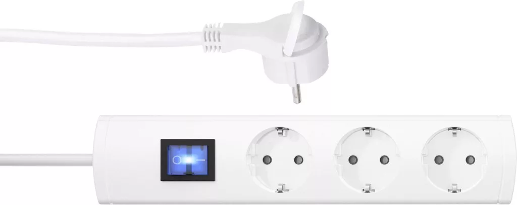 Műszaki adatok: Alkalmazás helye: Beltér · Anyag: Műanyag · Csatlakozási teljesítmény: 3680 W W · Dugaljak száma: 3 · Gyártói szín: Fehér · Hálózati csatlakozó típus: Védőérintkezős · Hálózati elosztó jellemzők: Gyermekvédelem · Kivitel (általános): Szögcsatlakozóval · Kábel típus DIN/VDE szerint: H05VV-F 3G 1,5 mm² · Kábelhossz: 1.40 m · Mennyiség megadása: 3 részes · Működés jelző: Optikai · Szerelési mód: Szabadon álló · További műszaki adatok: Névleges áramerősség: 16 A · Védelmi típus: IP20 · Üzemi feszültség: 230 V