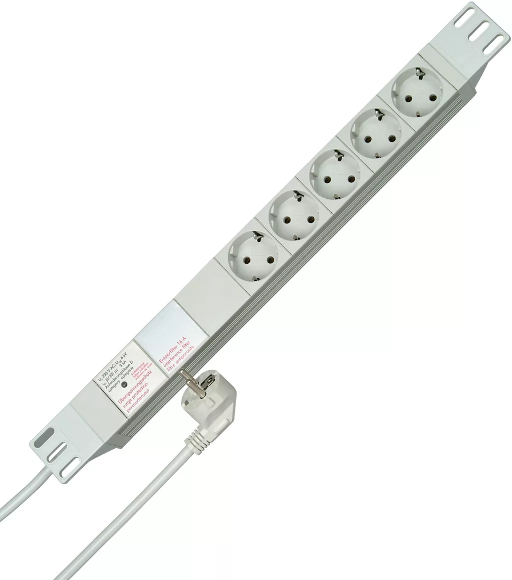 Műszaki adatok: Alkalmazás helye: Beltér · Anyag: Műanyag · Dugaljak száma: 5 · Gyártói szín: Fehér · Hálózati csatlakozó típus: Védőérintkezős · Hálózati elosztó jellemzők: Túlfeszültség elleni védelem · Kábel típus DIN/VDE szerint: H05VV-F 3G 1,5 mm² · Kábelhossz: 2.00 m · Méret, hossz: 482.6 mm · Működés jelző: Optikai · Szerelési mód: Állványos, Szerelési lyukak · Üzemi feszültség: 230 V