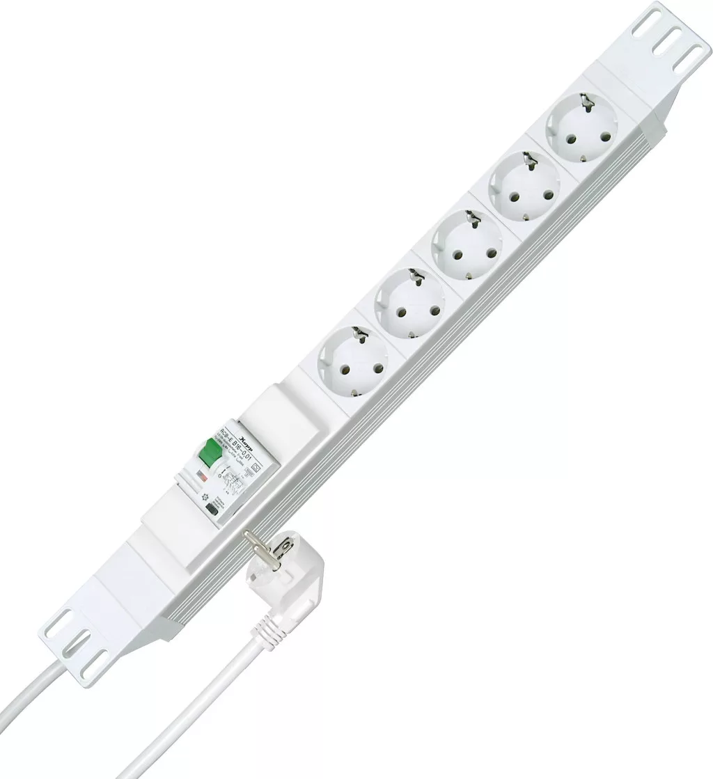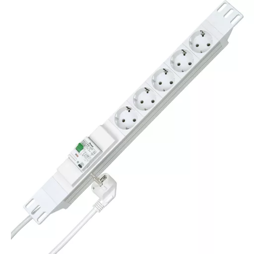 Műszaki adatok: Alkalmazás helye: Beltér · Anyag: Műanyag · Dugaljak száma: 5 · Gyártói szín: Fehér · Hálózati csatlakozó típus: Védőérintkezős · Hálózati elosztó jellemzők: Maradékáram-/vezetővédő kapcsolóval · Kábel típus DIN/VDE szerint: H05VV-F 3G 1,5 mm² · Kábelhossz: 2.00 m · Méret, hossz: 482.6 mm · Szerelési mód: Állványos, Szerelési lyukak · Üzemi feszültség: 230 V