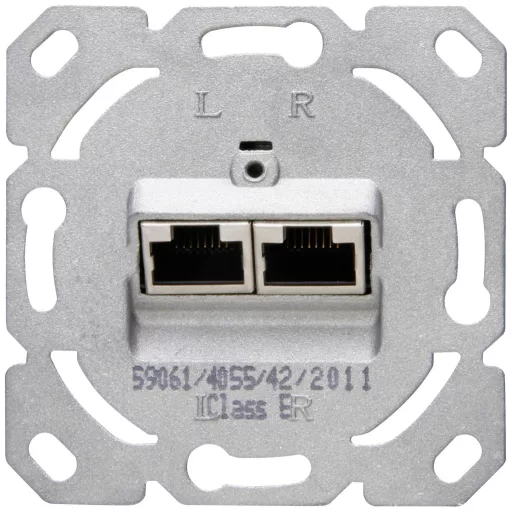 Hálózati csatlakozóaljzat CAT6, szögletes kimenettel, LSA támogatás, 2 külön csatlakozó csatlakozás, 2x8 (8) tűs, süllyesztetten szerelhető, minden Kopp UAE fedélhez alkalmas