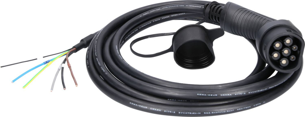 Műszaki adatok: Csatlakozó típus A (illetve bemenetek): Kábel, nyitott végekkel · Csatlakozó típus B (illetve kimenetek): 2-es típus · Fázisok száma: 3 fázisú · Kábelhossz: 5 m · Névleges feszültség: 400 V · Töltési teljesítmény: 11 kW · Töltő üzemód (eMobility): 3. üzemmód · Töltőáram: 16 A