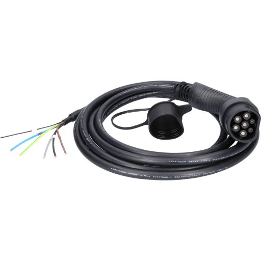 efuturo töltőkábel egyenes, nyitott végű 2-es típusú csatlakozóval fali dobozhoz való csatlakoztatáshoz, 3 fázis, 11 kW-ig, 16 A, 400 V, üzemmód 3,5 méter