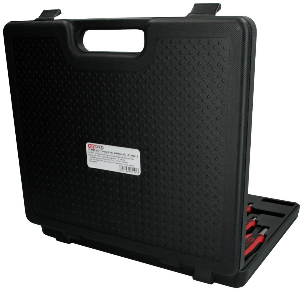 Gömbfejjel a hosszú végén. Ideális nehezen hozzáférhető csavarokhoz. Kétkomponensű nyéllel. Végig edzett. Matt krómozású. . Speciális szerszámacél Masszív műanyag tokban.