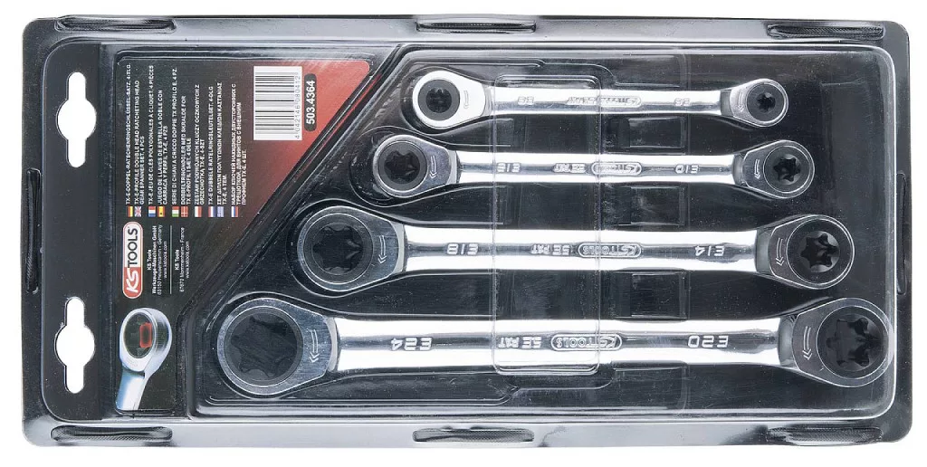 GEARplus Torx-E dupla racsnis kulcskészlet, 4 db