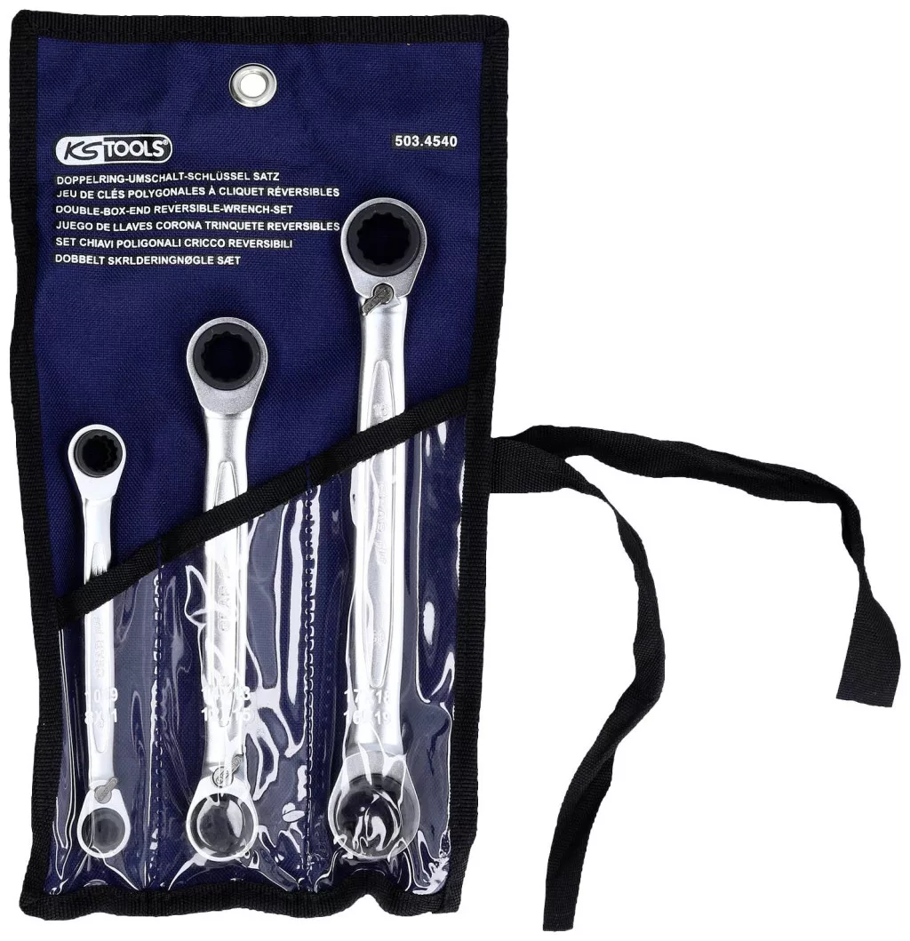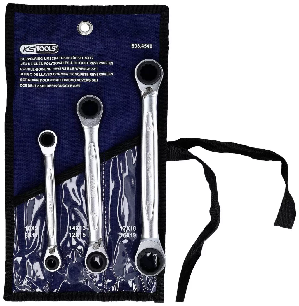 Műszaki adatok: Anyag: Króm-vanádium acél · Fogak száma: 72 · Kulcsszélesség: 8 mm, 19 mm · Mennyiség megadása: 3 részes