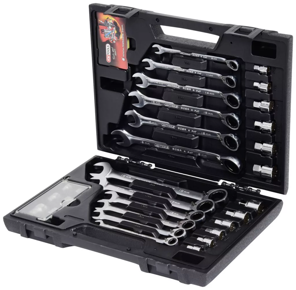 GEARplus RINGSTOP racsnis kombinált kulcs készlet, 30 db adapterrel