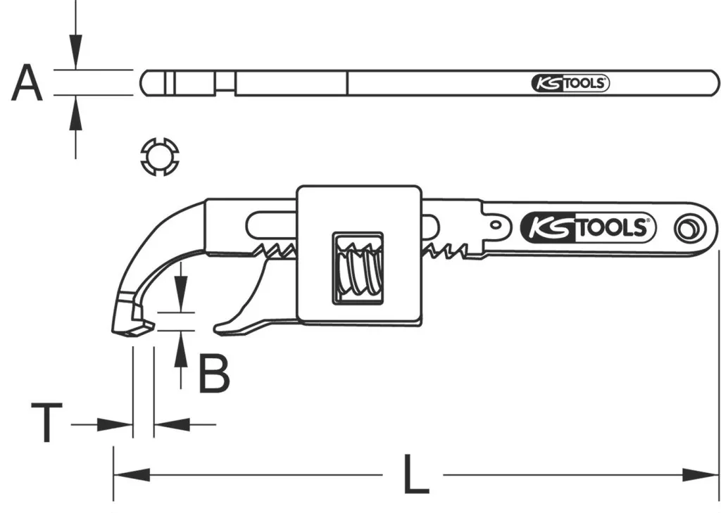 Csuklós horogkulcs orral, 30-200 mm