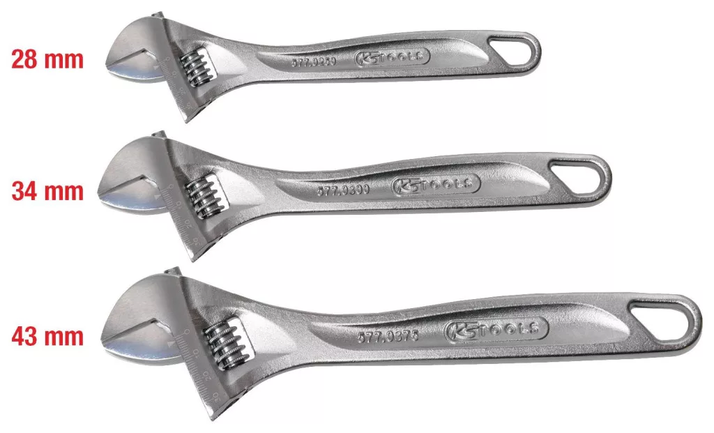 Műszaki adatok: Anyag: Króm-vanádium acél · Kulcsszélesség: 28 mm, 34 mm, 43 mm · Súly: 2800 g · További műszaki adatok: Anyag1: Legfinomabb króm-vanádium acél, matt szatén króm bevonat