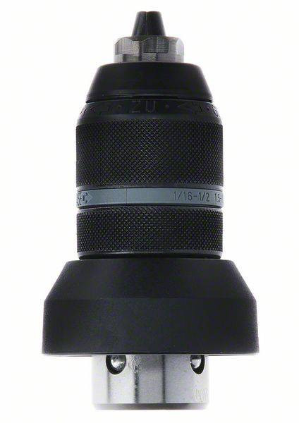 Az adapter kompatibilis a Bosch forgókalapácsokkal. A kulcs nélküli tokmány adapterrel egy Bosch rendszerű tokmány, amelyet további szerszámok nélkül lehet rögzíteni és eltávolítani. A fúrókat (1,5–13 mm átmérőjű) minimális erőfeszítéssel rögzíti és nem igényel kulcsot.