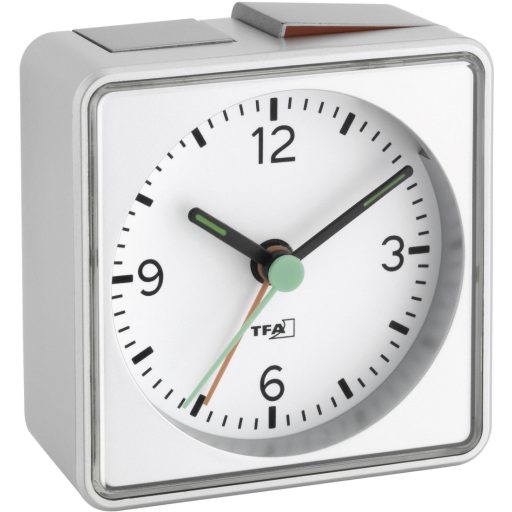 Műszaki adatok: Fluoreszkáló: Mutató · Házszín: Ezüst · Kivitel: Kvarc · Méret, magasság: 70 mm · Méret, mélység: 35 mm · Méret, szélesség: 70 mm · Riasztási idők: 1 · Számlap/kijelző szín: Fehér · Tápellátás: 1 db ceruzaelem (nem szállítjuk vele) · Óra típus: Ébresztőóra