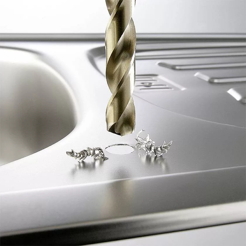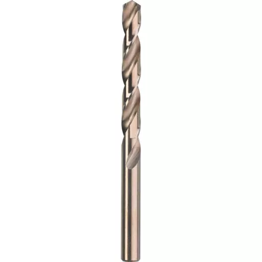 DIN 338 szerint jobbos vágás, N típusú, kobalt ötvözet 5%, precíziós köszörülés, szín bronz, 135°-os pontszög, DIN 1412 C szerinti hasítási ponttal, önközpontosító, hengeres, ipari minőségű, extrém hőállóság nehezen megmunkálható anyagokhoz, mint például ötvözött és ötvözetlen acél, Nirosta rozsdamentes acél V2A/V4A, öntöttvas és öntött acél, bronz, műanyagok.