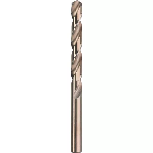 DIN 338 szerint jobbos vágás, N típusú, kobalt ötvözet 5%, precíziós köszörülés, szín bronz, 135°-os pontszög, DIN 1412 C szerinti hasítási ponttal, önközpontosító, hengeres, ipari minőségű, extrém hőállóság nehezen megmunkálható anyagokhoz, mint például ötvözött és ötvözetlen acél, Nirosta rozsdamentes acél V2A/V4A, öntöttvas és öntött acél, bronz, műanyagok.