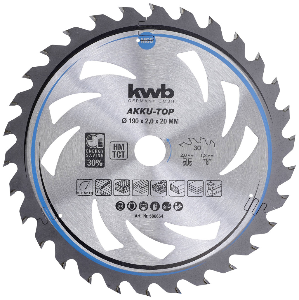 Hornyolással a magasabb és gyorsabb munkavégzés érdekében, keményfém hegyű, precíz, tiszta vágás, különösen alkalmas akkus kézi körfűrészekhez és vezetékes gépekhez. Tömör fához, bevonatos forgácslapokhoz (munkalapok és konyhai munkalapok), téglalapokhoz, forgácslapokhoz és farostlemezekhez, valamint üvegszál erősítésű műanyagokhoz.