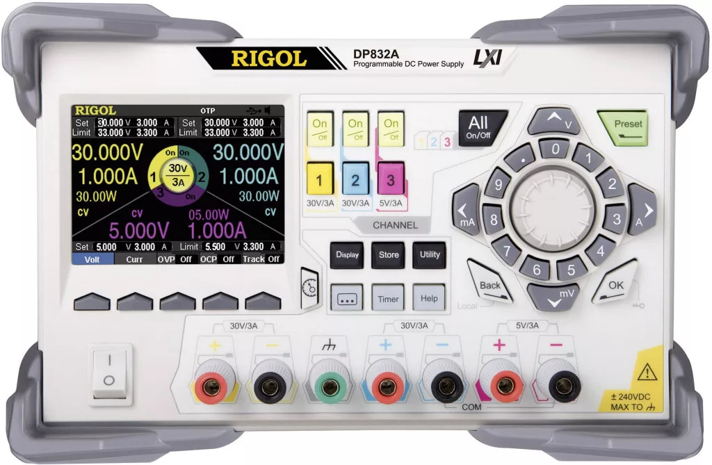 Műszaki adatok: Gyártói szám: DP832A · Kalibrált: ISO · Kimenetek száma: 3 x · Kimeneti feszültség (max.): 30 V · Kimeneti feszültség (min.): 0 V · Kimeneti feszültség 2 (max.): 30 V · Kimeneti feszültség 2 (min.): 0 V · Kimeneti feszültség 3 (max.): 5 V · Kimeneti feszültség 3 (min.): 0 V · Kimeneti áram (max.): 3 A · Kimeneti áram 2 (max.): 3 A · Kimeneti áram 2 (min.): 0 A · Kimeneti áram 3 (max.): 3 A · Kimeneti áram 3 (min.): 0 A · Labortápegység típus: Labortápegység, szabályozható · Min. kimeneti áram: 0 A · Méret, hossz: 418 mm · Méret, magasság: 157 mm · Méret, szélesség: 239 mm · Súly: 10.5 kg · Technológia (tápegység): Lineárisan szabályozott · Teljesítmény: 195 W · Tápcsatlakozó: IEC 320 C14