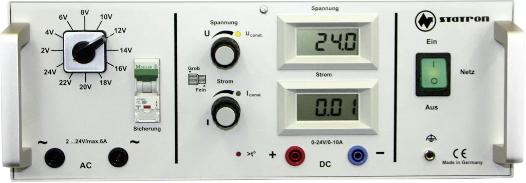 A Statron univerzális hálózati tápegységek tömör felépítésüknek és kiemelkedő ár-teljesítmény viszonyuknak köszönhetően főleg az iskolai oktatásban és a kiképzés területén ajánlottak. A 2 - 14 V között átkapcsolható kimeneti feszültség AC feszültségként, vagy a beépített hídegyenirányítón keresztül DC feszültségként külön biztonsági hüvelyeken levehető. A biztonságot az EN 61010 és 60950 szabványok betartása garantálja.