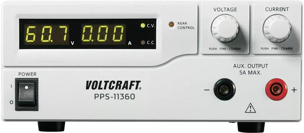 A PPS sorozat labortápegységei potenciálfüggetlen DC feszültségforrásként szolgálnak kisfeszültségű fogyasztók üzemeltetéséhez. A beállítható kimenet az elülső oldalon max. 5 A-ig, és a hátoldalon a teljes névleges áramerősségig (1 - 36 V/DC / 0 - 5 A) kihasználható. A csatlakozás az előlapon 4 mm-es biztonsági aljakon keresztül, a hátoldalon nagyáramú csavaros szorítókon keresztül történik. A feszültség és az áram beállítását fokozatmentesen végezheti egy digitális forgószabályzó segítségével, durva- és finombeállítással, a gyors és precíz érték beállítása érdekében. Az értékek a jól áttekinthető kijelzőn jelennek meg. Az áramhatárolás az állandó áramú működéshez rövidzárlat híd nélkül előre beállítható.