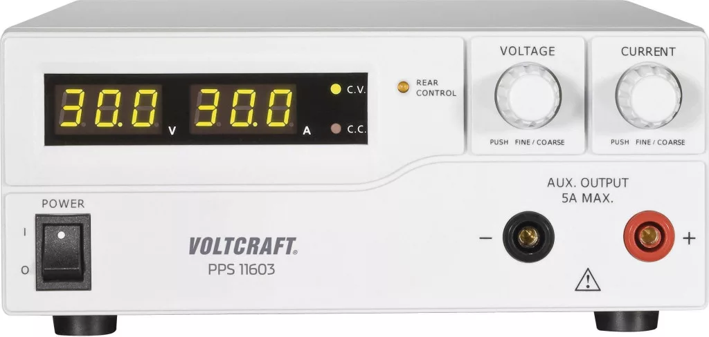 A PPS sorozat labortápegységei potenciálfüggetlen DC feszültségforrásként szolgálnak kisfeszültségű fogyasztók üzemeltetéséhez. A beállítható kimenet az elülső oldalon max. 5 A-ig, és a hátoldalon a teljes névleges áramerősségig (1 - 60 V/DC / 0 - 5 A) kihasználható. A csatlakozás az előlapon 4 mm-es biztonsági aljakon keresztül, a hátoldalon nagyáramú csavaros szorítókon keresztül történik. A feszültség és az áram beállítását fokozatmentesen végezheti egy digitális forgószabályzó segítségével, durva- és finombeállítással, a gyors és precíz érték beállítása érdekében. Az értékek a jól áttekinthető kijelzőn jelennek meg. Az áramhatárolás az állandó áramú működéshez rövidzárlat híd nélkül előre beállítható.