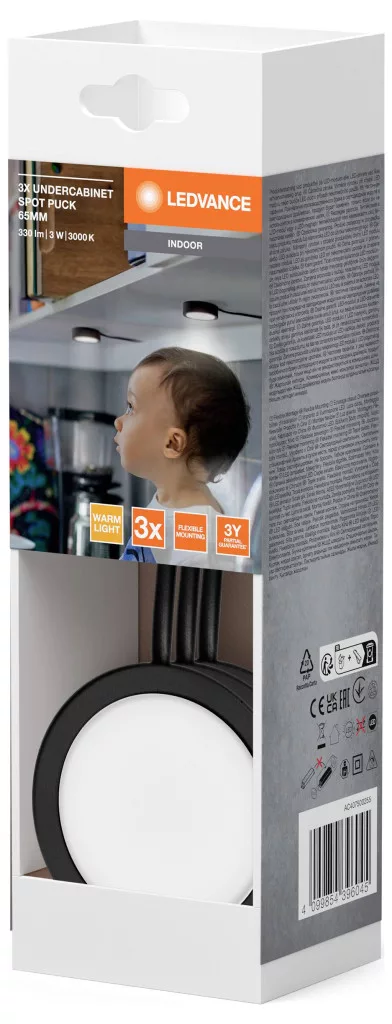 Undercabinet Spot Puck 65mm 3 x 3W 830 Black